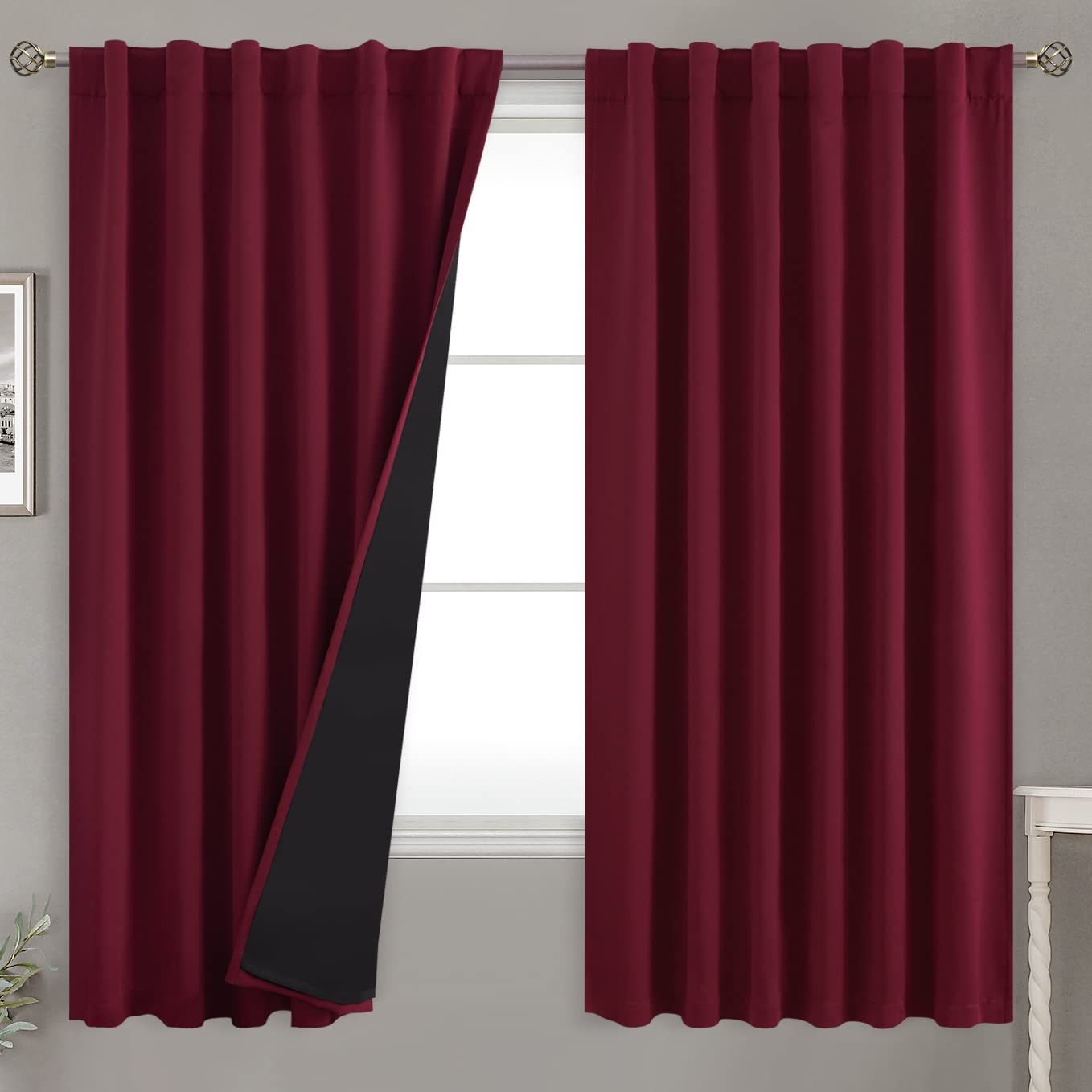 Bgment Full Blackout Curtains With Heat Insulation Liner Curtains 63 Inches Long,Rod Pocket And Back Tab Double Layer Room Darke