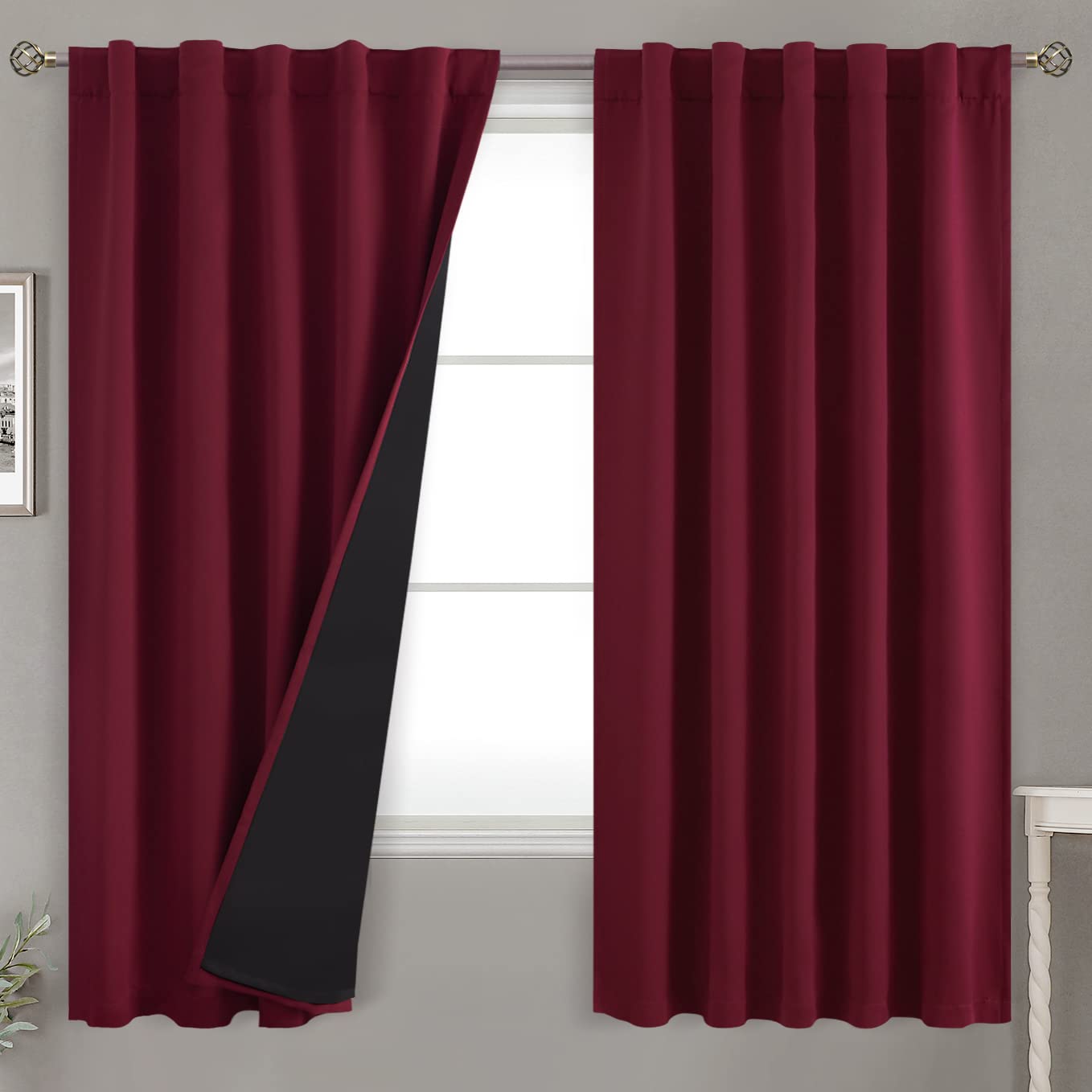 Bgment Full Blackout Curtains With Insulated Lining Curtains 63 Inches Long,Rod Pocket And Back Tab Double Layer Room Darkening