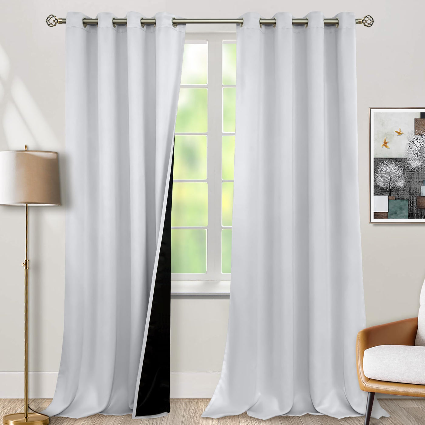 Bgment Greyish White 100% Blackout Curtains For Living Room 95 Inch Length 2 Panels, Thermal Insulated Full Light Blocking Energ