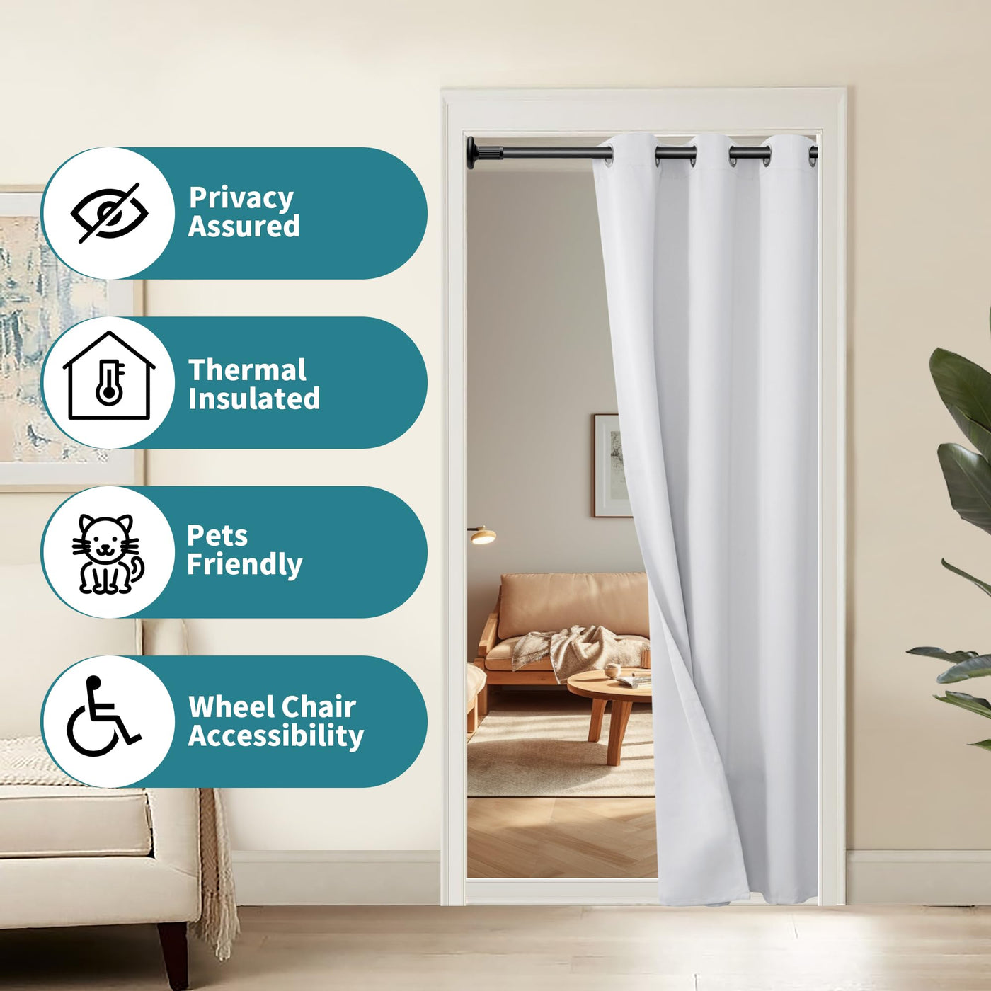 Bgment Greyish White Door Curtain 78 Inch Length For Doorway, Bedroom Closet Curtain, Privacy Thermal Insulated Blackout Grommet Room Divider For Room Separation, 1 Panel, 40 Inch Wide