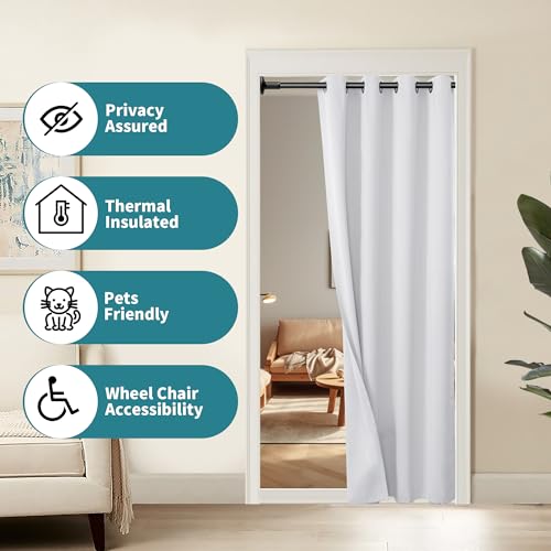 Bgment Greyish White Door Curtain 80 Inch Length For Doorway, Bedroom Closet Curtain, Privacy Thermal Insulated Blackout Grommet Room Divider For Room Separation, 1 Panel, 52 Inch Wide