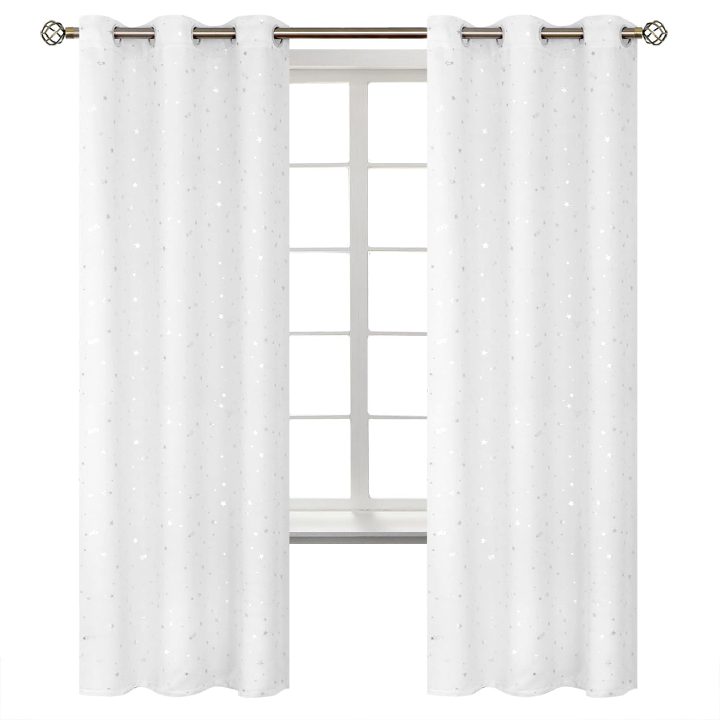 Bgment Kids Blackout Curtains For Bedroom - Grommet Thermal Insulated Silver Star Print Room Darkening Curtains For Living Room,