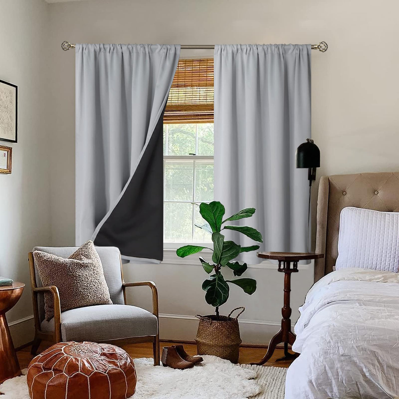 Size Advice:To insure a better room darkening effect, please choose curtain width 1.5-2 times than window wide. And install curtain rod 1.17 inch above window top.
