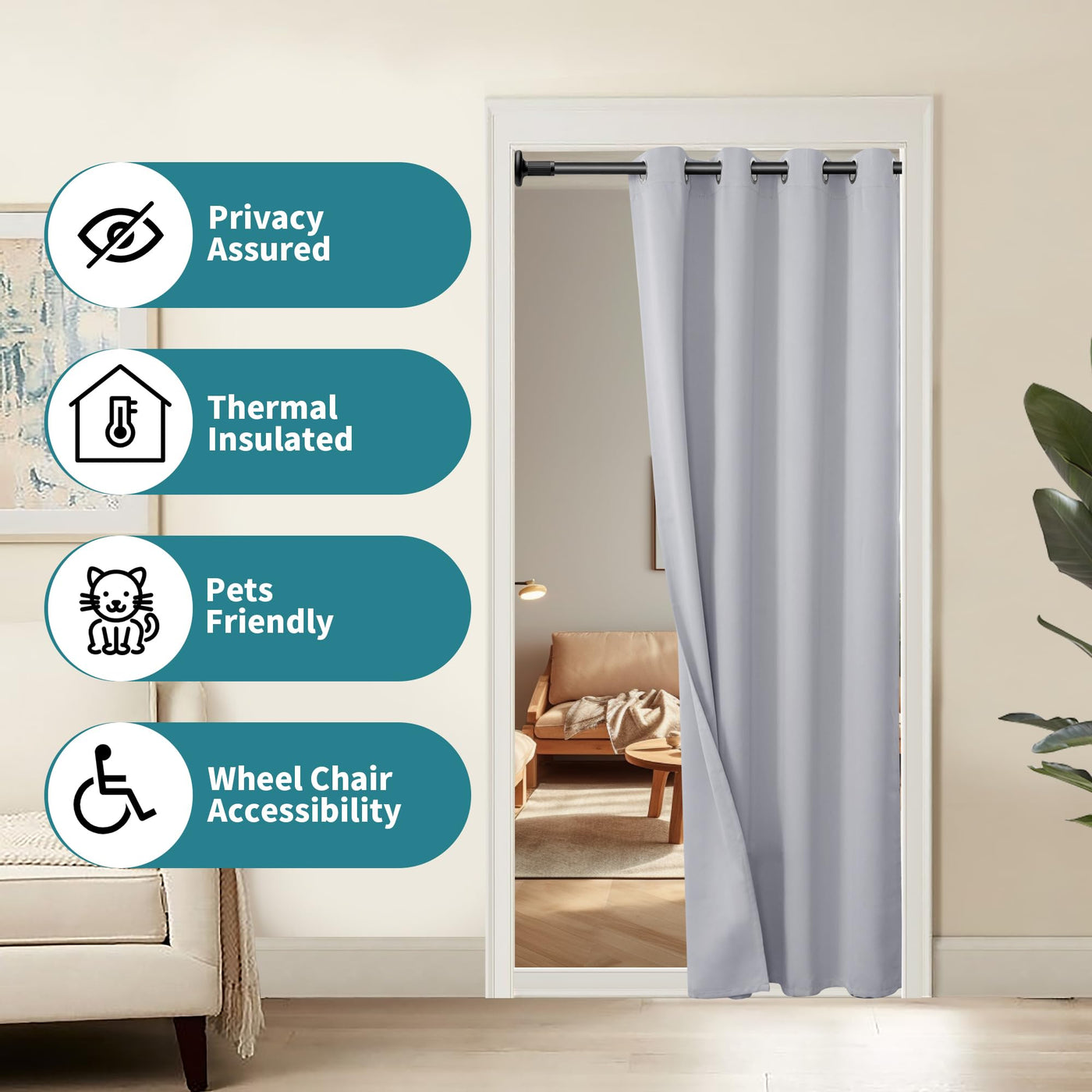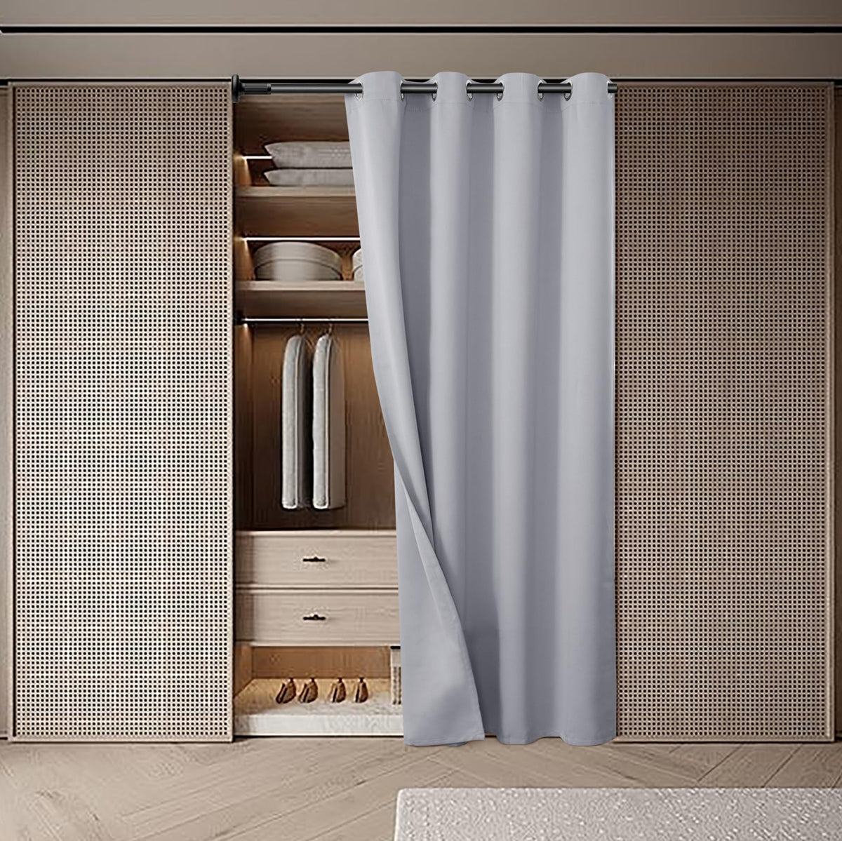 Introducing BGment Door Curtains: Elevate your space with the touch of sophistication. A single panel in elegant dark grey. The silver metal grommets, designed for rods less than 1.6 inches in diameter, offer effortless installation. Luxuriously crafted from high-quality polyester fabric, these curtains bring comfort and a beautiful drape to any room. Step into a world of possibilities with our Alternative Door solution: An accordion-style curtain that not only divides family spaces for enhanced privacy but also stands as a chic and cost-effective alternative to traditional doors. From accordion to folding options, redefine your interior design with this versatile and functional choice. Unlock Multi-Use versatility: This doorway curtain is a dynamic room divider, finding its place seamlessly in bedroom closets, French doors, laundry rooms, cabinets, pantry, and kitchens. Beyond division, it transforms into a stylish temporary door, offering convenience with flair. Embark on a journey of Multi-Functionality: Our blackout curtains, beyond their light-blocking prowess, excel in temperature control and noise reduction. Create a serene and tranquil environment that adapts to your lifestyle. Perfect Size, Perfect Fit: Measure your doorway's width and height for a curtain that ensures optimal coverage. Our size guidelines guarantee the best draping effect, harmonizing with your space effortlessly. Upgrade your home with functional elegance—BGment Door Curtains, where style meets perfect fit.