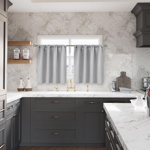 Bgment Light Grey Short Curtains 36 Inches Length For Kitchen Cafe - Rod Pocket 34 Inch Wide Thermal Insulated Darkening Drapes For Basement Camper Small Window, 2 Panels, 34 X 36 Inch