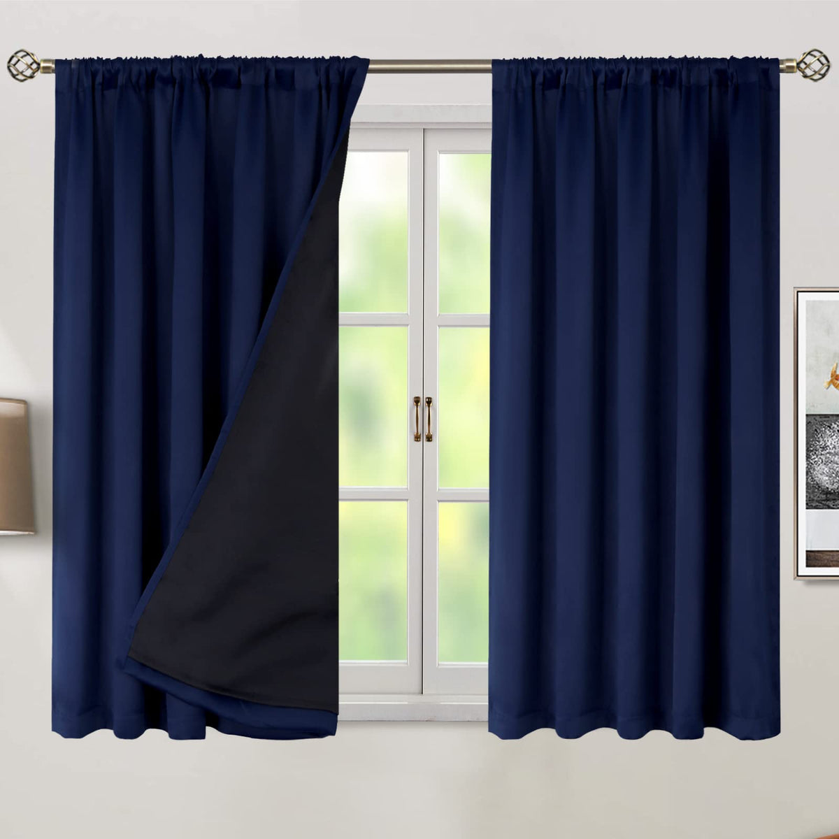 Bgment Navy Blue 100% Blackout Curtains 45 Inches Long With Black Liner, Rod Pocket And Back Tab Double Layer Full Room Darkening Thermal Window Curtains For Bedroom, 2 Panels, Each 52 X 45 Inch