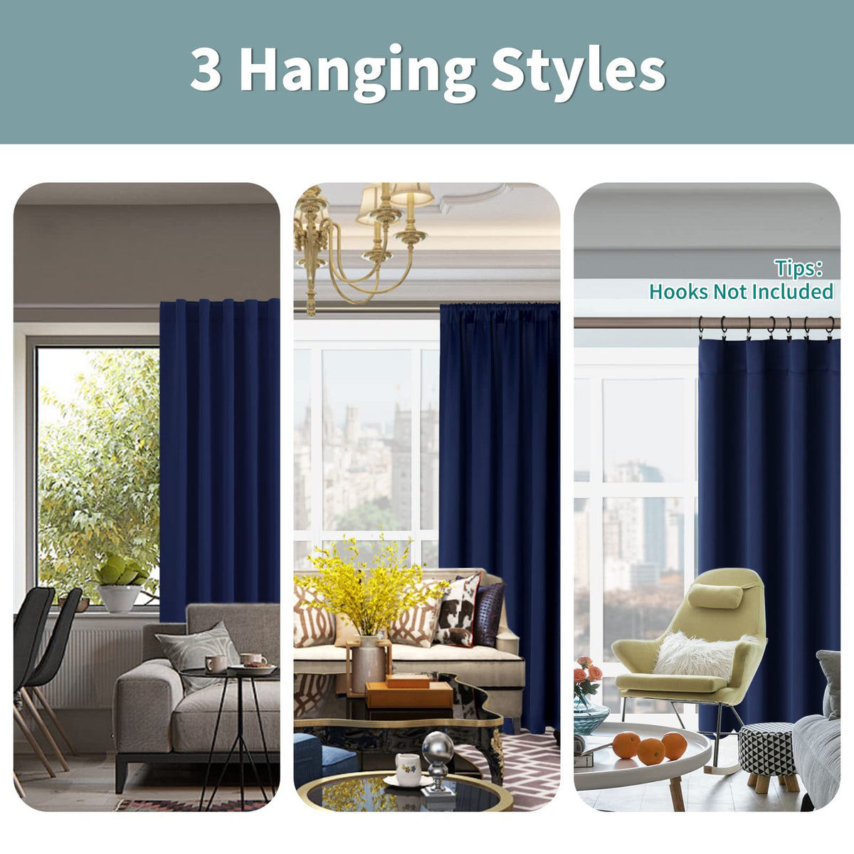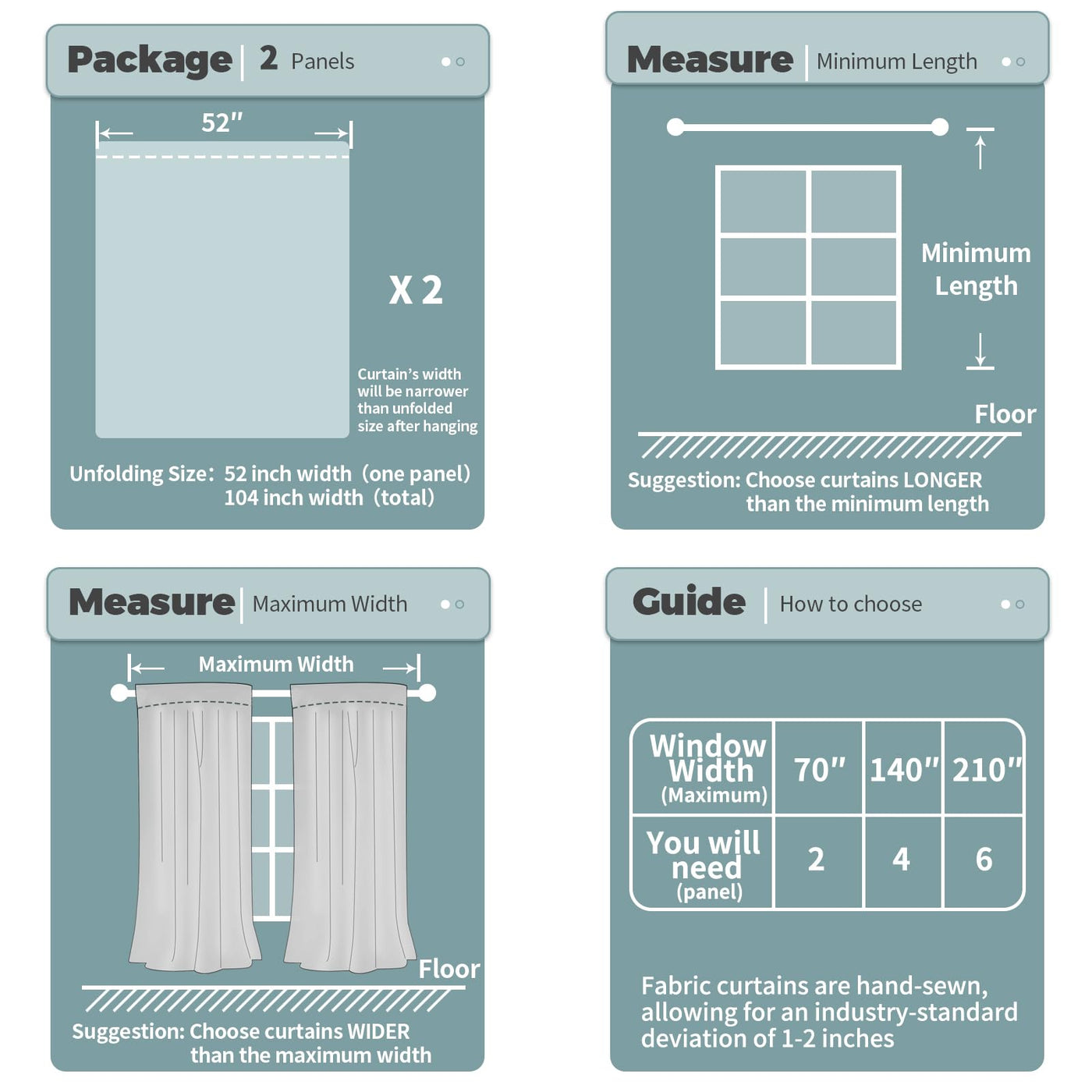 Size Advice:To insure a better room darkening effect, please choose curtain width 1.5-2 times than window wide. And install curtain rod 1.5 inch above window top.