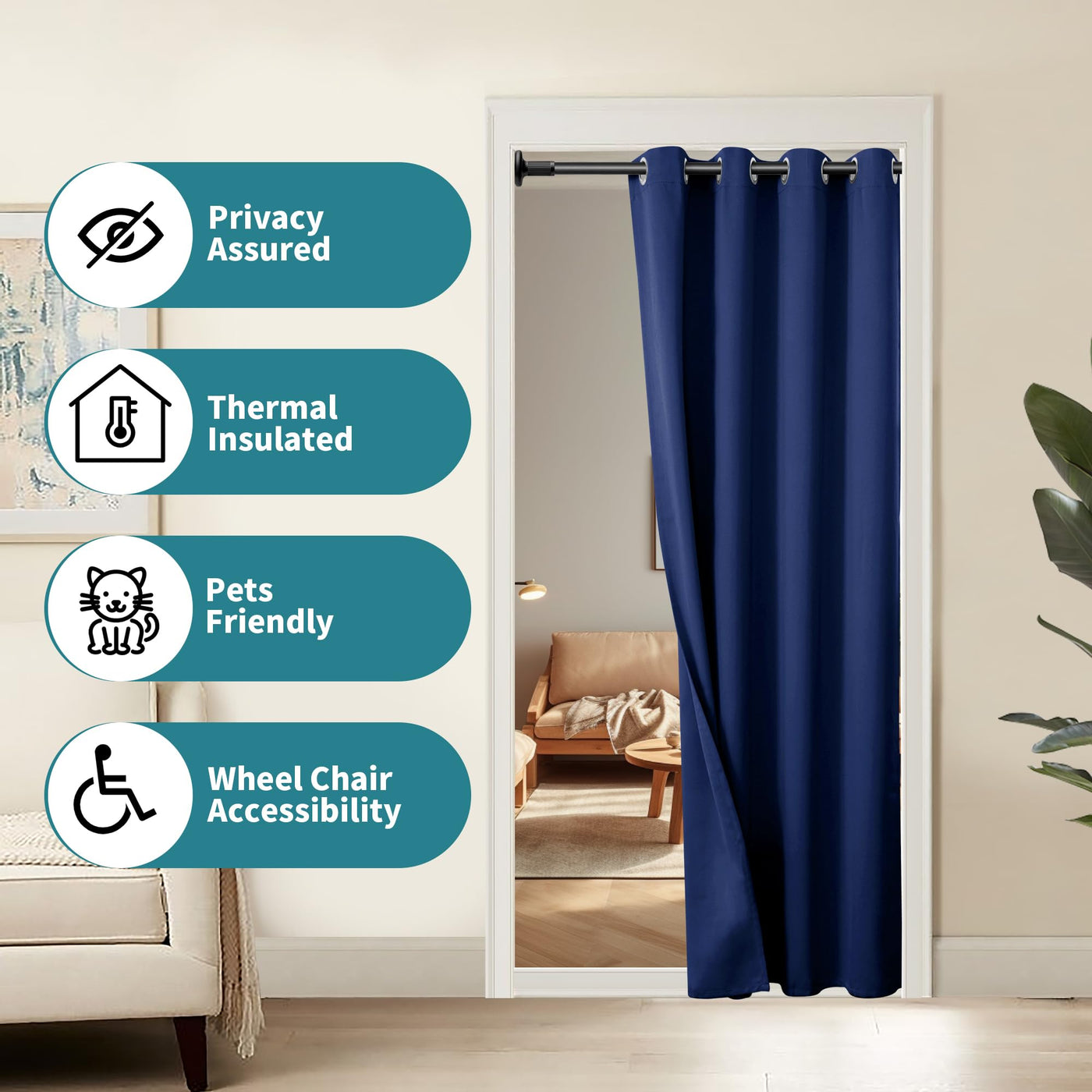 Bgment Navy Door Curtain 80 Inch Length For Doorway, Bedroom Closet Curtain, Privacy Thermal Insulated Blackout Grommet Room Divider For Room Separation, 1 Panel, 52 Inch Wide