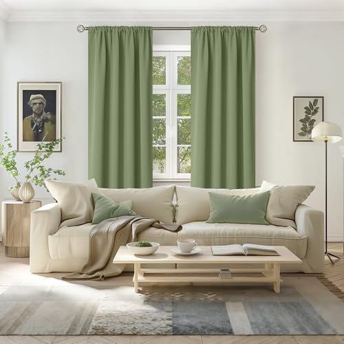 Bgment Olive Green Blackout Curtains 84 Inches Length 2 Panels For Living Room - Rod Pocket Thermal Insulated Room Darkening Drapes For Bedroom Dining Privacy, 42 X 84 Inch