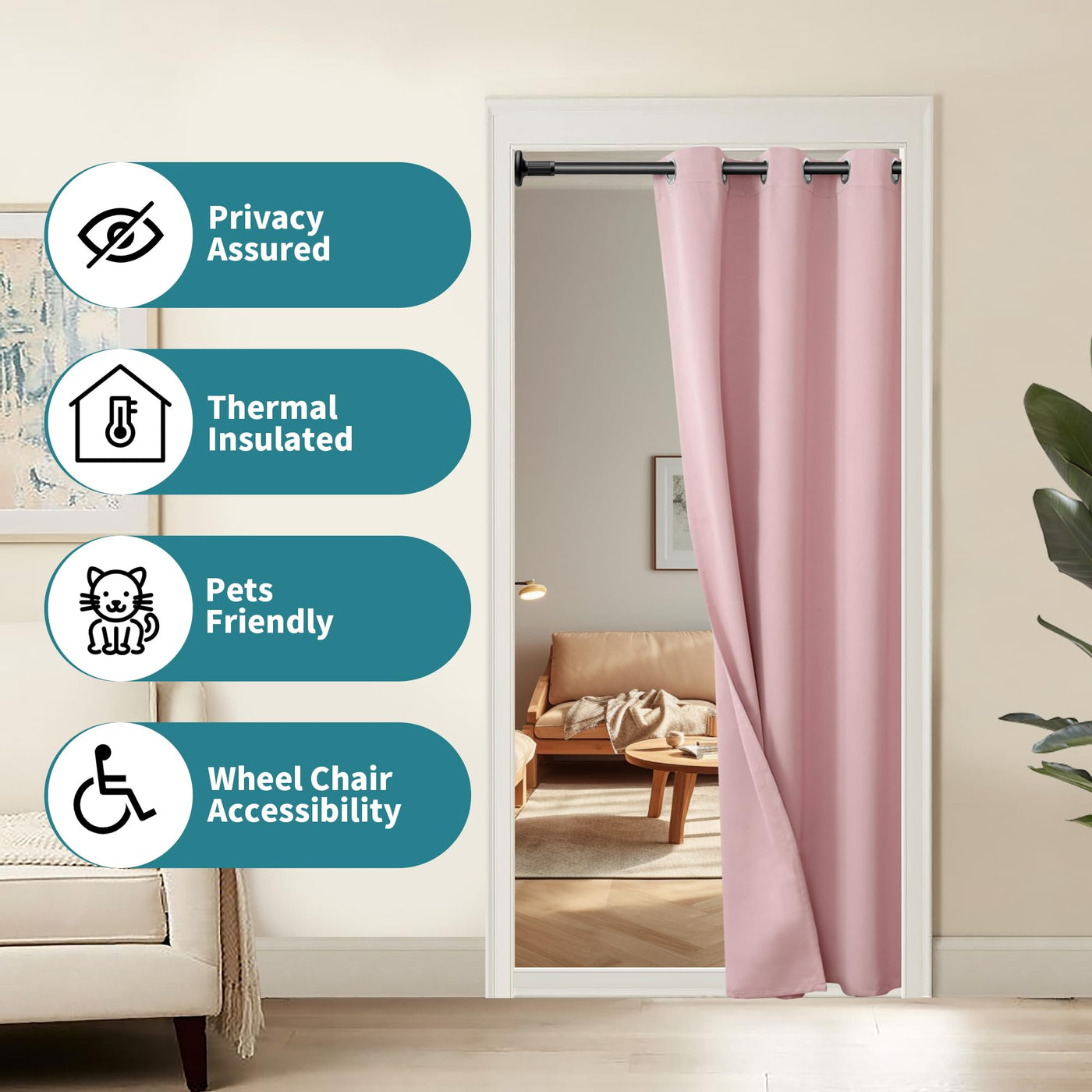 Bgment Pink Door Curtain 80 Inch Length For Doorway, Bedroom Closet Curtain, Privacy Thermal Insulated Blackout Grommet Room Divider For Room Separation, 1 Panel, 34 Inch Wide