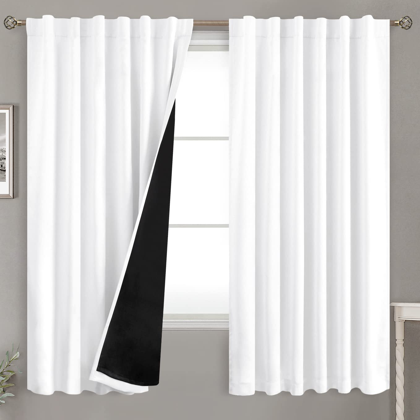 Bgment Pure White 100% Blackout Curtains 63 Inches Long With Thermal Insulated Liner, Rod Pocket And Back Tab Double Layer Full