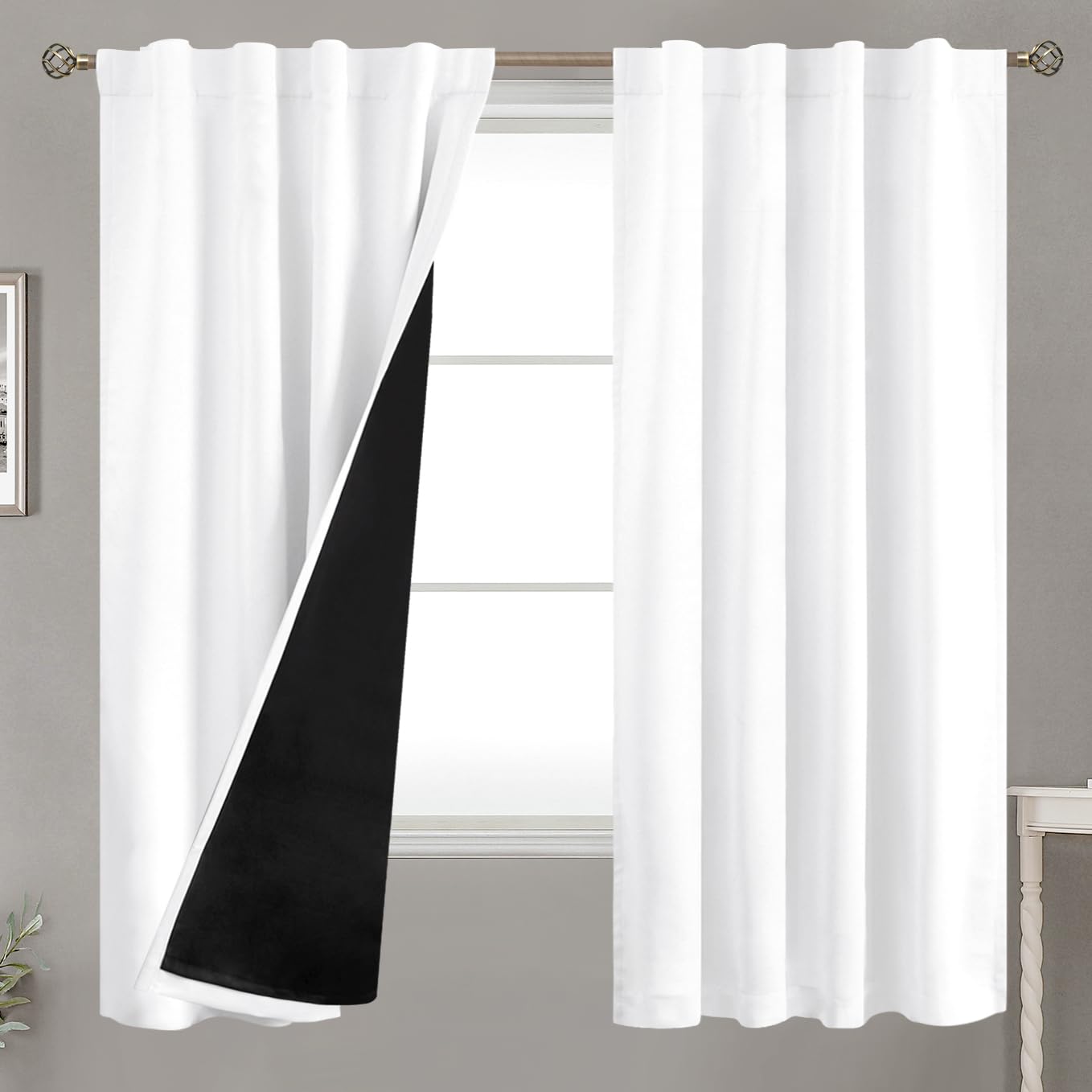 Bgment Pure White 100% Blackout Curtains 63 Inches Long With Thermal Insulated Liner, Rod Pocket And Back Tab Double Layer Full Room Darkening Window Curtain For Bedroom, 2 Panels, Each 38 X 63 Inch