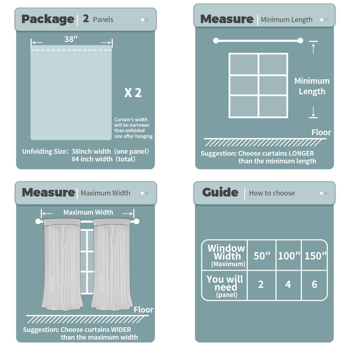 Size Advice:To insure a better room darkening effect, please choose curtain width 1.5-2 times than window wide. And install curtain rod 1.5 inch above window top.