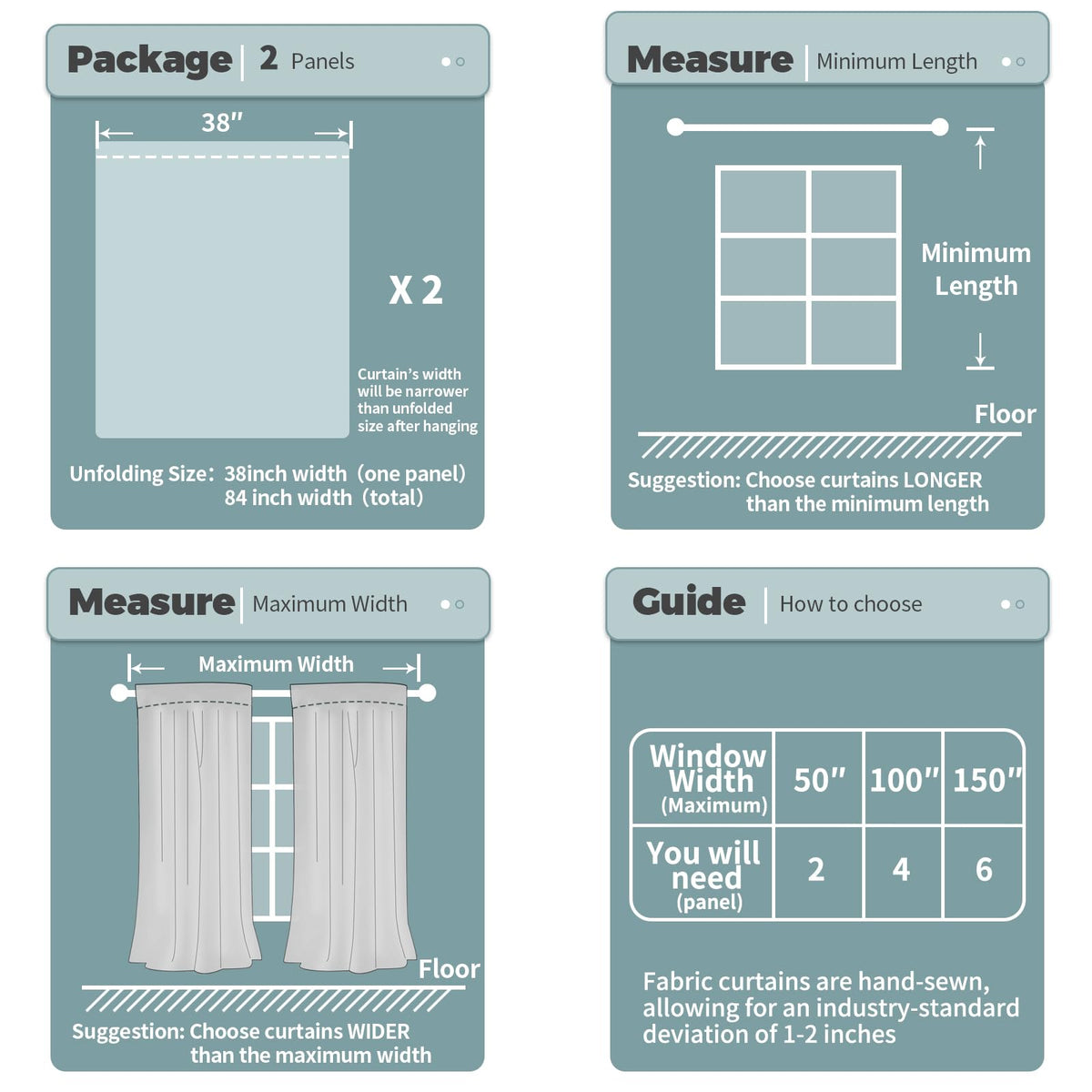Measurement: Curtains are measured before hanging, flat on floor. Lengths are from top to bottom.
