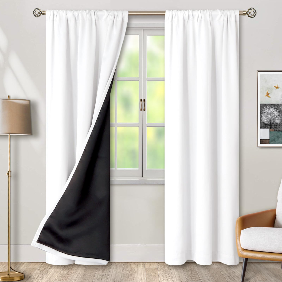 Bgment Pure White 100% Blackout Curtains For Bedroom, Black Out Living Room 84 Inch Panels With Thermal Liner, Rod Pocket And Back Tab Double Layer Room Darkening Drapes, 2 Panels, Each 38 X 84 Inch