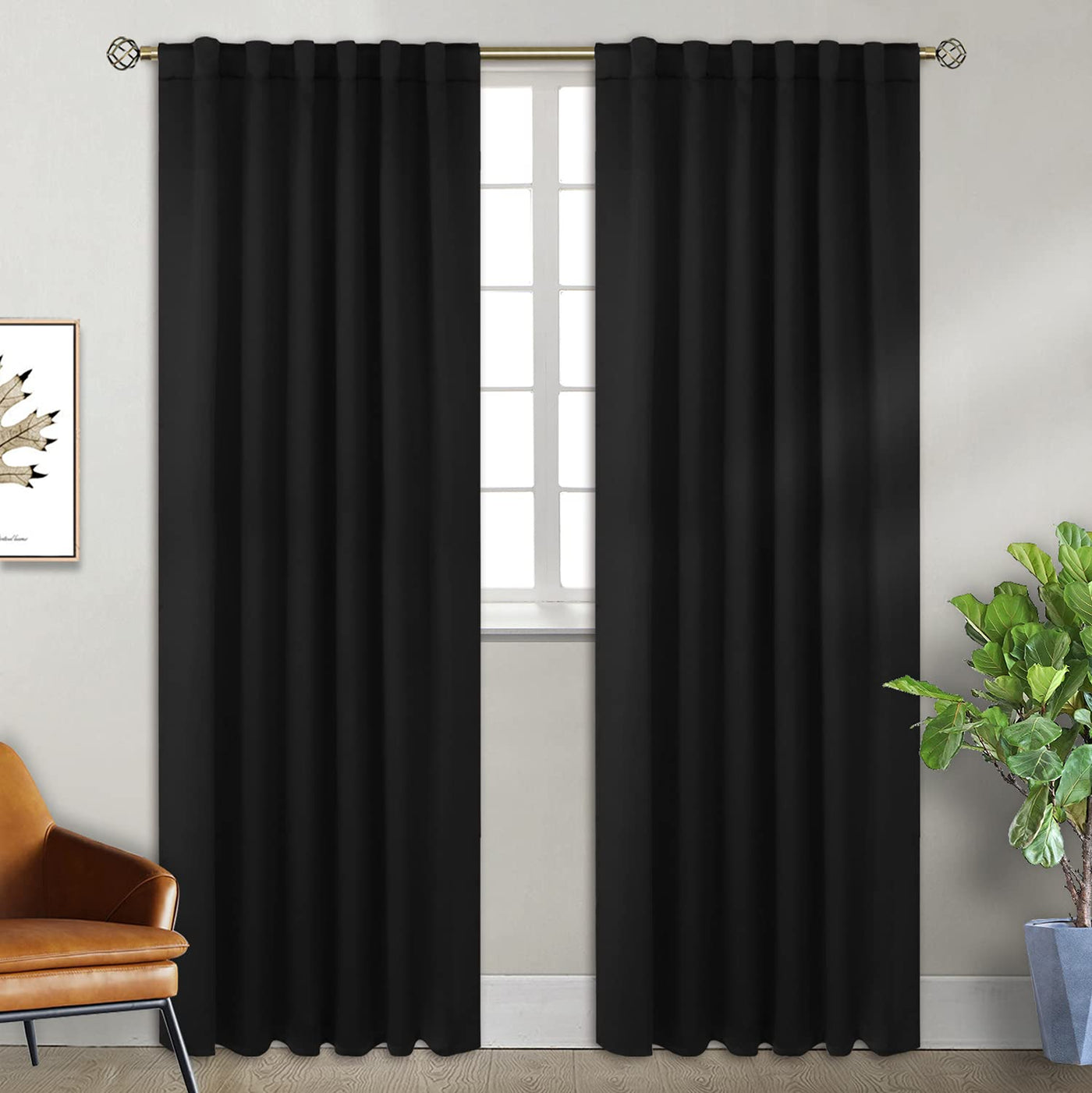 Bgment Rod Pocket And Back Tab Blackout Curtains For Bedroom - Thermal Insulated Room Darkening Curtains For Living Room, 2 Window Curtain Panels (52 X 90 Inch, Black)