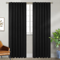 Size Advice:To insure a better room darkening effect, please choose curtain width 1.5-2 times than window wide. And install curtain rod 1.5 inch above window top.