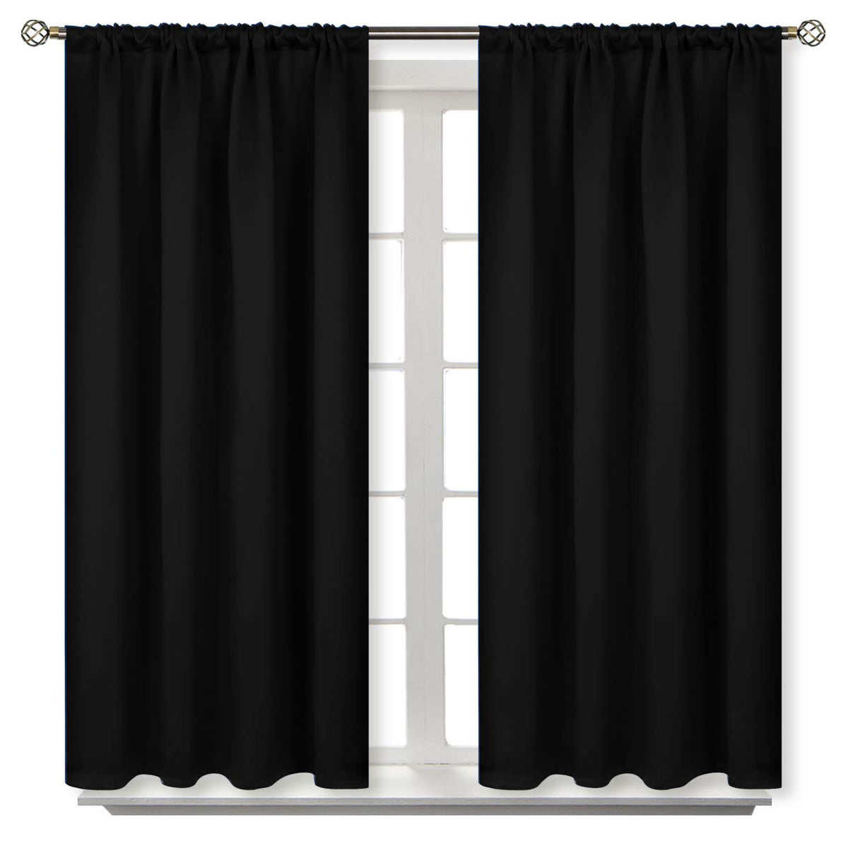 Bgment Rod Pocket Blackout Curtains For Bedroom - Thermal Insulated Room Darkening Curtain For Living Room, 52 X 54 Inch, 2 Panels, Black