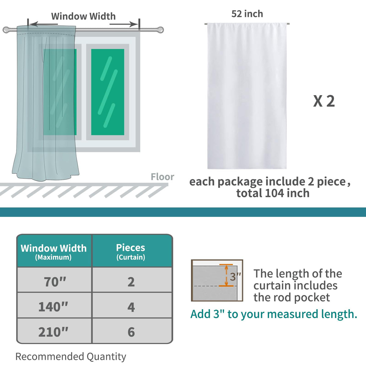 Size Advice:To insure a better room darkening effect, please choose curtain width 1.5-2 times than window wide. And install curtain rod 1.5 inch above window top.