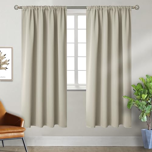 Bgment Rod Pocket Blackout Curtains For Bedroom - Thermal Insulated Room Darkening Curtain For Living Room, Light Camel, 42 X 72 Inch, 2 Panels