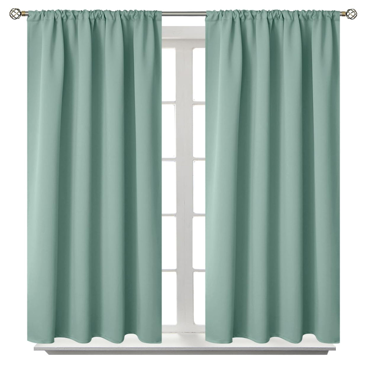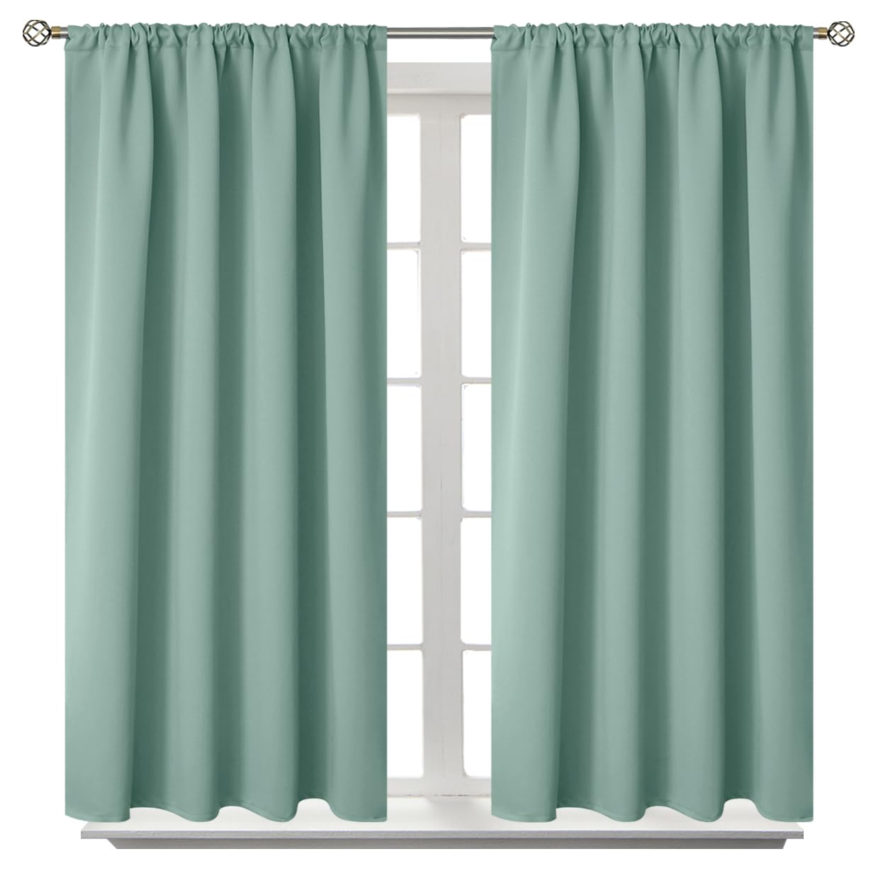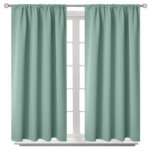 Bgment Rod Pocket Room Darkening Curtains For Bedroom 48 Inches Length - Thermal Insulated Blackout Curtain For Bedroom, Light Sage, 42 X 48 Inch, 2 Panels