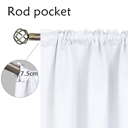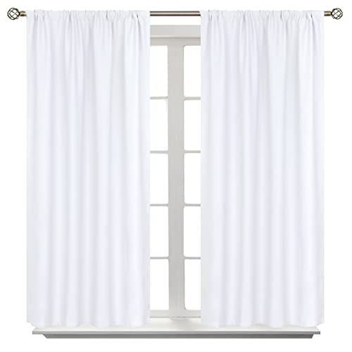 Bgment Rod Pocket White Curtains 48 Inches Length - Privacy Protection Short Window Treatment Curtains For Kithchen Home Decor, 2 Panels, Pure White, 42 X 48 Inch