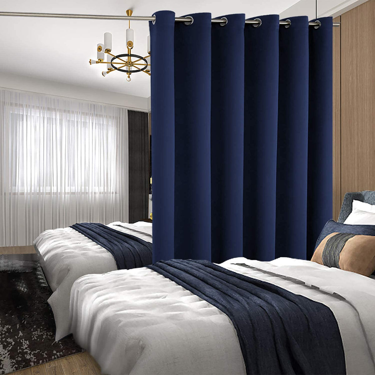 Bgment Room Darkening Curtain For Sliding Door, Wide Blackout Room Divider Curtain For Living Room 96 Inch Length, Thermal Privacy Soundproof Window Curtain For Bedroom, Navy, 1 Panel, 100 Wide