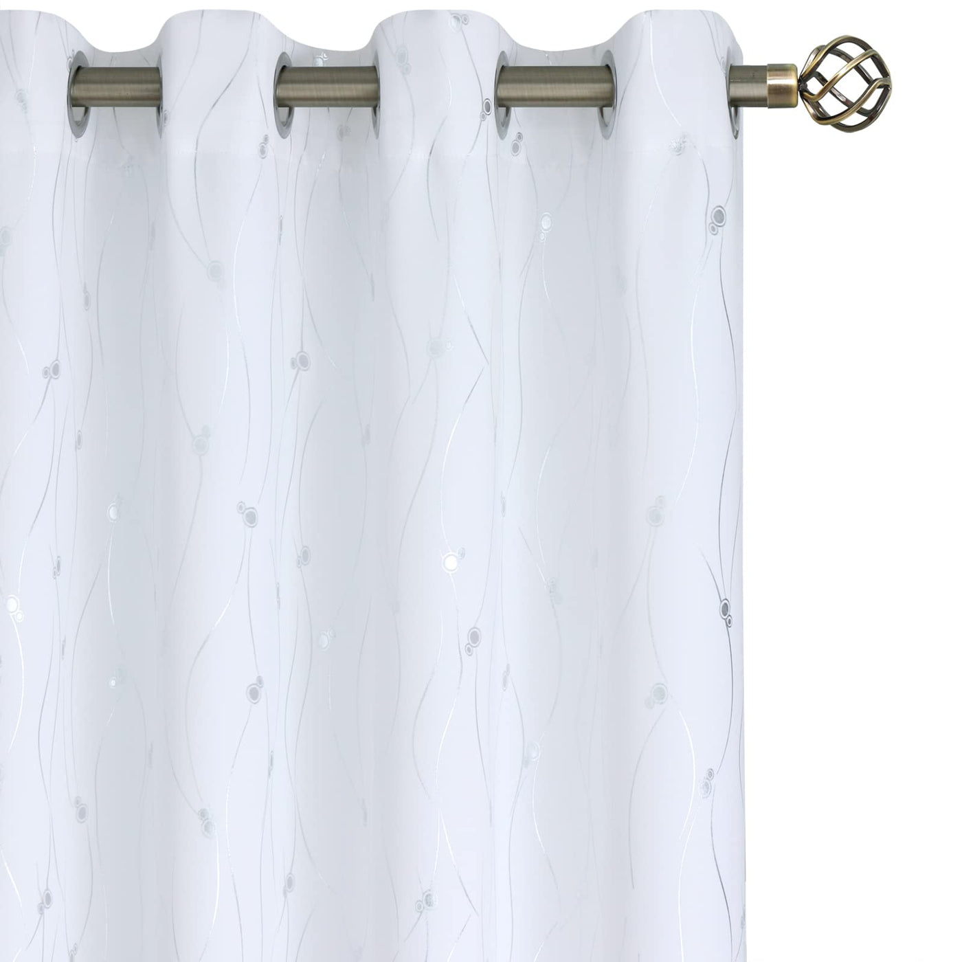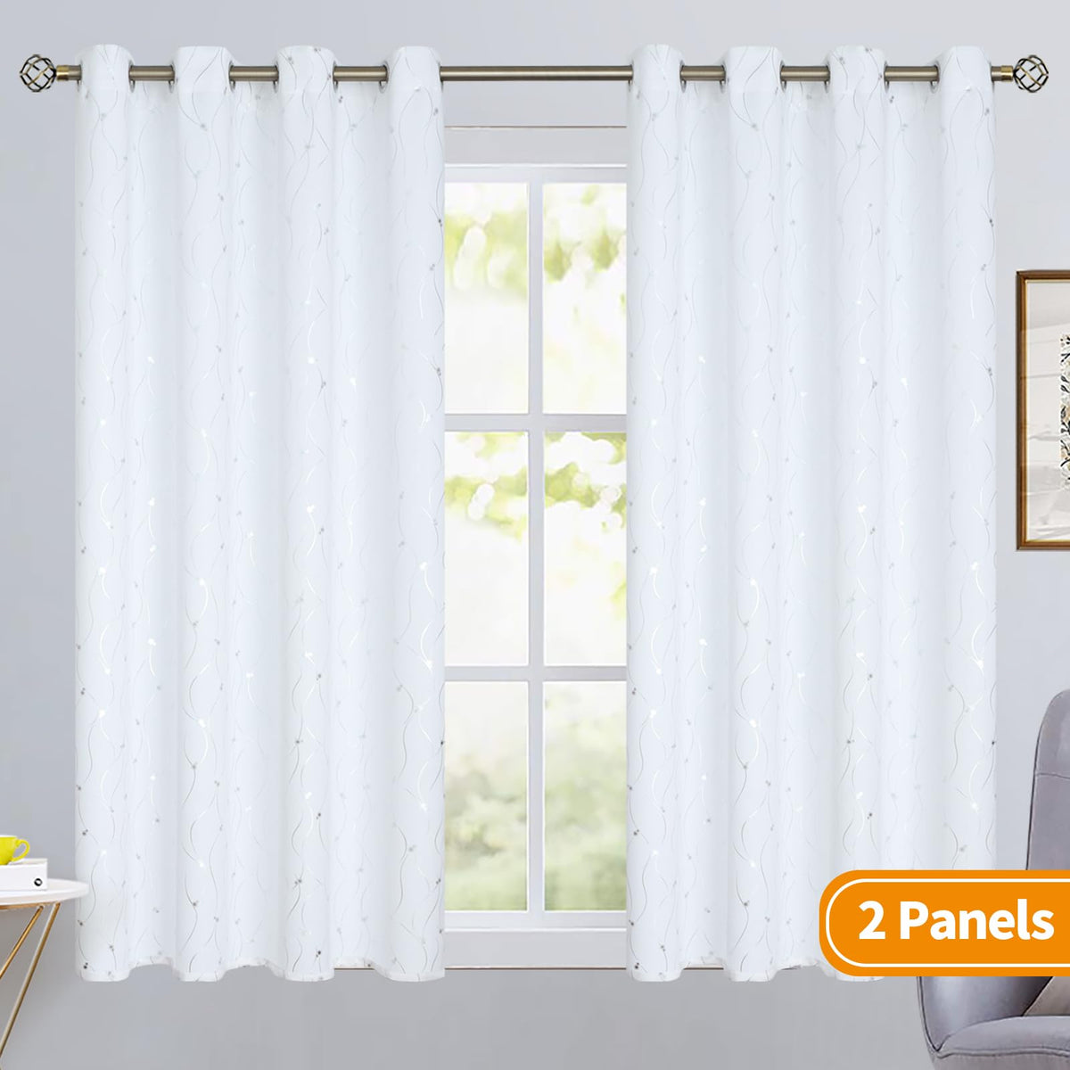 Bgment Room Darkening Curtains 54 Inches Long, Grommet Thermal Insulated Blackout Curtains With Wave Line And Dots Printed For Bedroom, 2 Panels, Each 52 X 54 Inch, Pure White