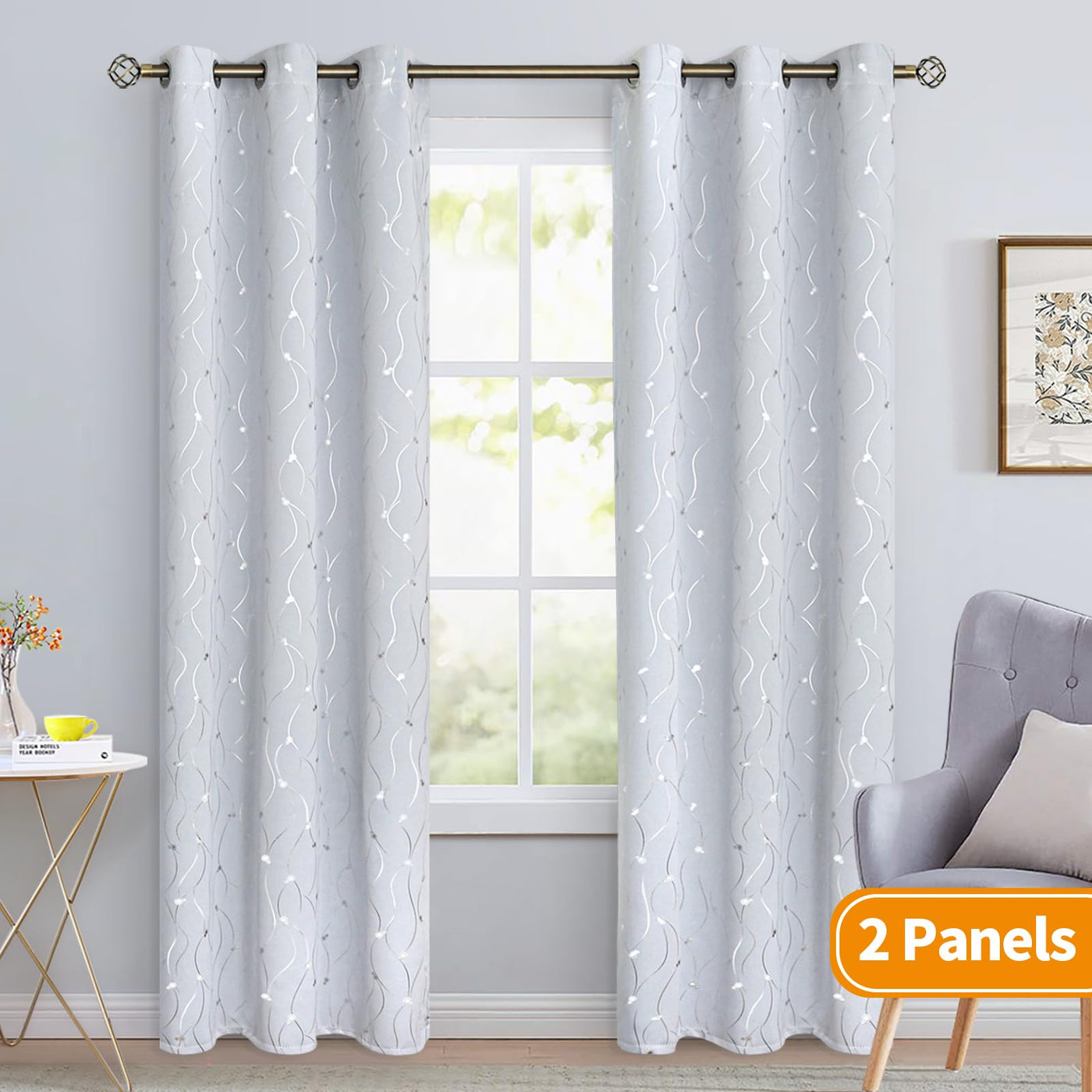 BGment blackout curtains with silver thread and dots foil print do great job in room darkening, thermal insulated and noise reducing. The light blocking bedroom curtains are made of high quality fabric which is soft and smooth. The patterned curtains will make your room elegant and modern which fit bedroom, living room, kids room and sliding glass door perfectly.