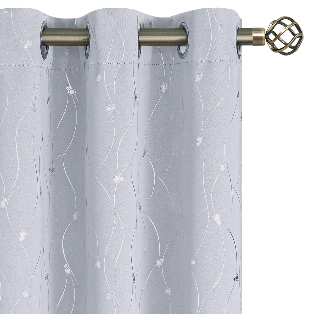 Bgment Room Darkening Curtains 84 Inches Long, Grommet Thermal Insulated Blackout Curtains With Wave Line And Dots Printed For Bedroom, 2 Panels, Each 38 X 84 Inch, Greyish White