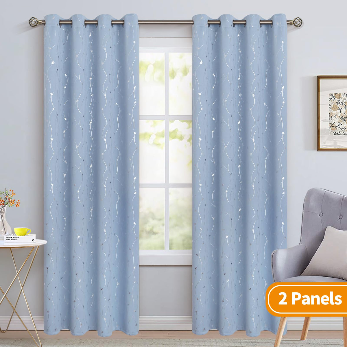 BGment blackout curtains with silver thread and dots foil print do great job in room darkening, thermal insulated and noise reducing. The light blocking bedroom curtains are made of high quality fabric which is soft and smooth. The patterned curtains will make your room elegant and modern which fit bedroom, living room, kids room and sliding glass door perfectly.