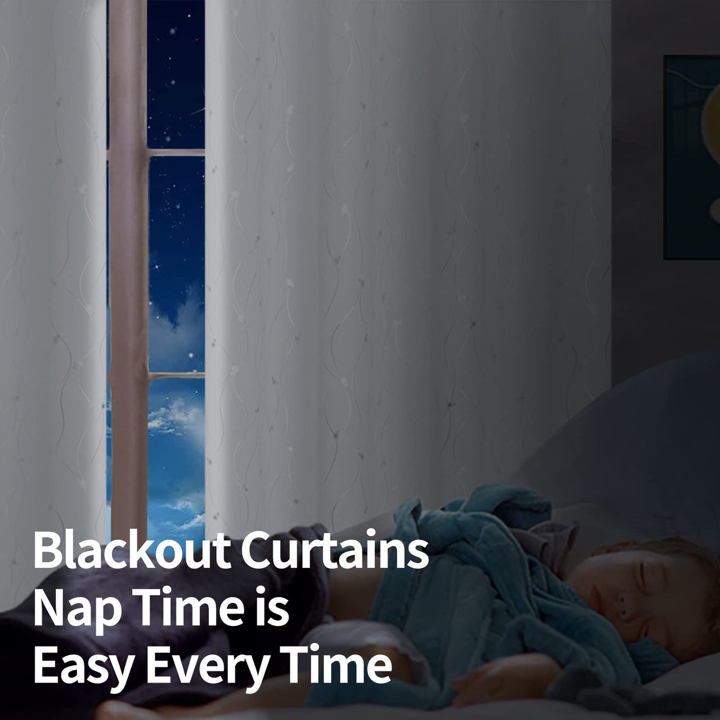 Bgment Room Darkening Curtains 96 Inches Long, Grommet Thermal Insulated Blackout Curtains With Wave Line And Dots Printed For Bedroom, 2 Panels, Each 55 X 96 Inch, Pure White