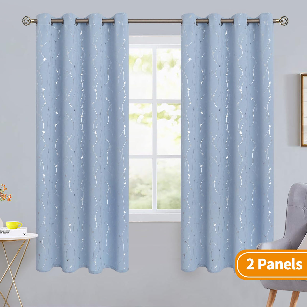 BGment blackout curtains with silver thread and dots foil print do great job in room darkening, thermal insulated and noise reducing. The light blocking bedroom curtains are made of high quality fabric which is soft and smooth. The patterned curtains will make your room elegant and modern which fit bedroom, living room, kids room and sliding glass door perfectly.