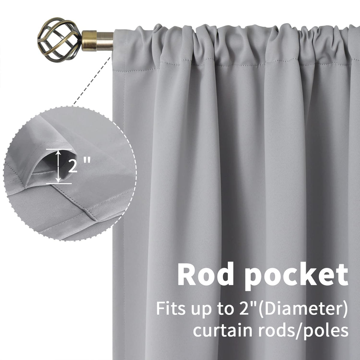 Size Advice:To insure a better room darkening effect, please choose curtain width 1.5-2 times than window wide. And install curtain rod 1.5 inch above window top.