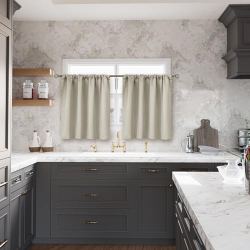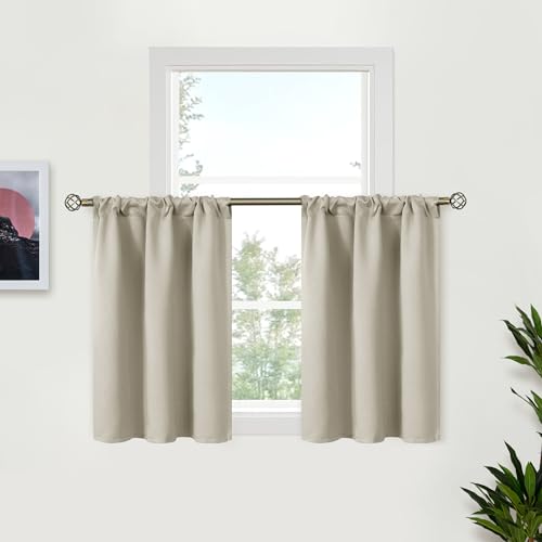 Bgment Short Blackout Curtains 36 Inches Length For Kitchen Camper - Rod Pocket Thermal Insulated Small Window Drapes For Bathroom Basement, Light Camel, 2 Panels, 34 X 36 Inch