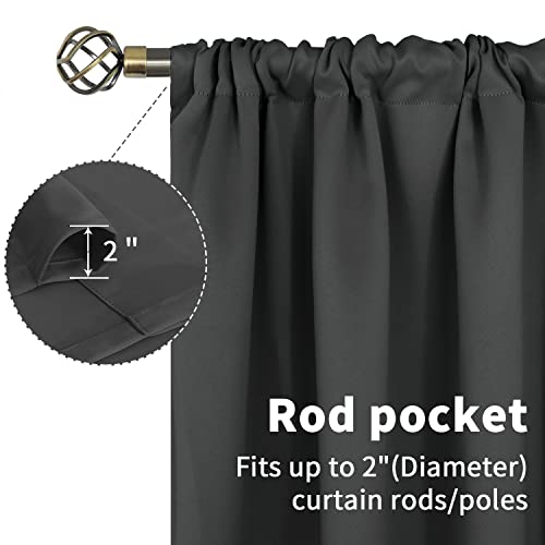 Bgment Short Blackout Curtains 36 Inches Length - Rod Pocket Thermal Insulated Room Darkening Window Drapes For Kitchen Bedroom Bathroom, Dark Grey, 2 Panels, 42 X 36 Inch