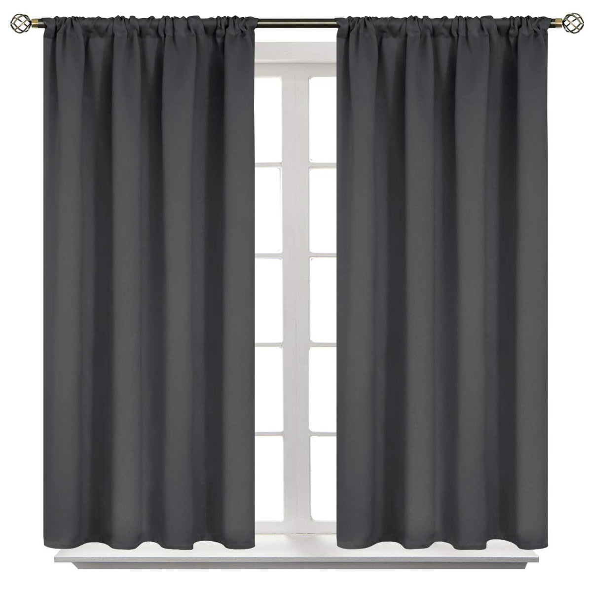 Bgment Short Blackout Curtains 48 Inches Length - Rod Pocket Thermal Insulated Room Darkening Window Drapes For Kitchen Bedroom Bathroom, Dark Grey, 2 Panels, 42 X 48 Inch