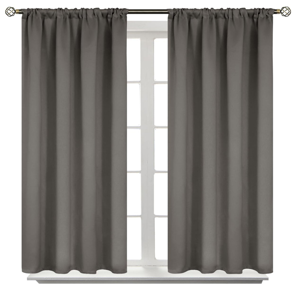 Bgment Short Blackout Curtains 48 Inches Length - Rod Pocket Thermal Insulated Room Darkening Window Drapes For Kitchen Bedroom Bathroom, Grey, 2 Panels, 42 X 48 Inch