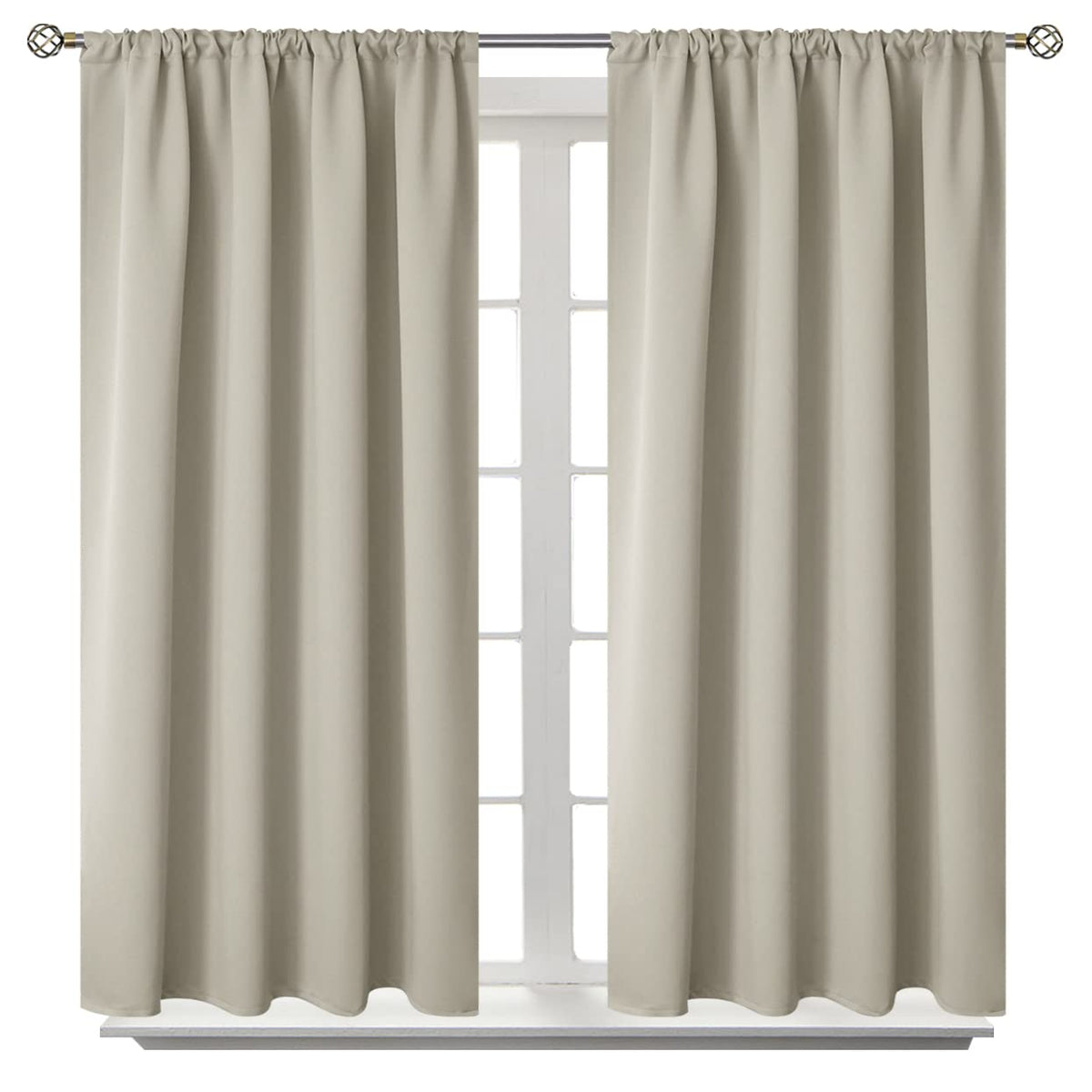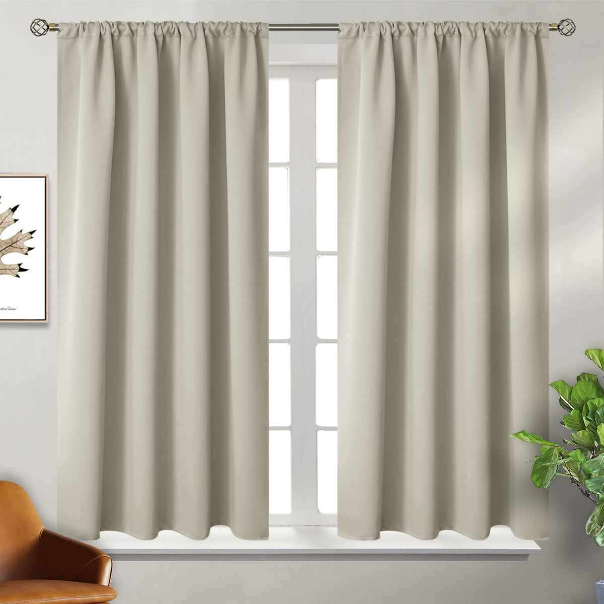 Bgment Short Blackout Curtains 48 Inches Length - Rod Pocket Thermal Insulated Room Darkening Window Drapes For Kitchen Bedroom Bathroom, Light Camel, 2 Panels, 42 X 48 Inch