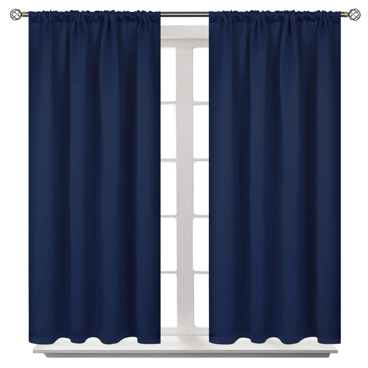 Bgment Short Blackout Curtains For Bedroom - Room Darkening Curtain Rod Pocket 45 Inch Length Thermal Insulated Window Drapes For Kitchen Bathroom Cafe, 42 X 45 Inch, 2 Panels, Navy Blue
