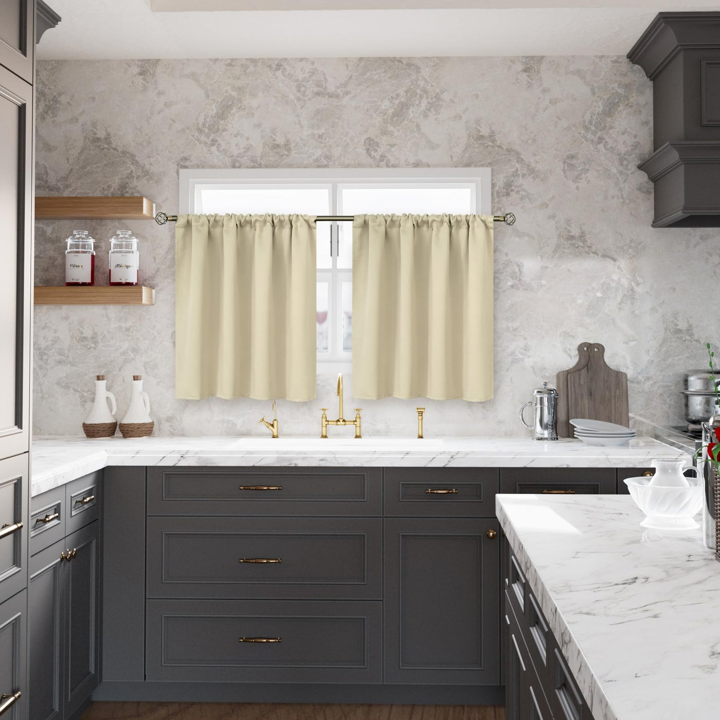 Bgment Short Curtains 36 Inch Length For Kitchen Bathroom - Rod Pocket Half Window Drapes Thermal Insulated For Small Bedroom Cafe Rv Privacy, Light Sage, 34 X 36 Inch, 2 Panels