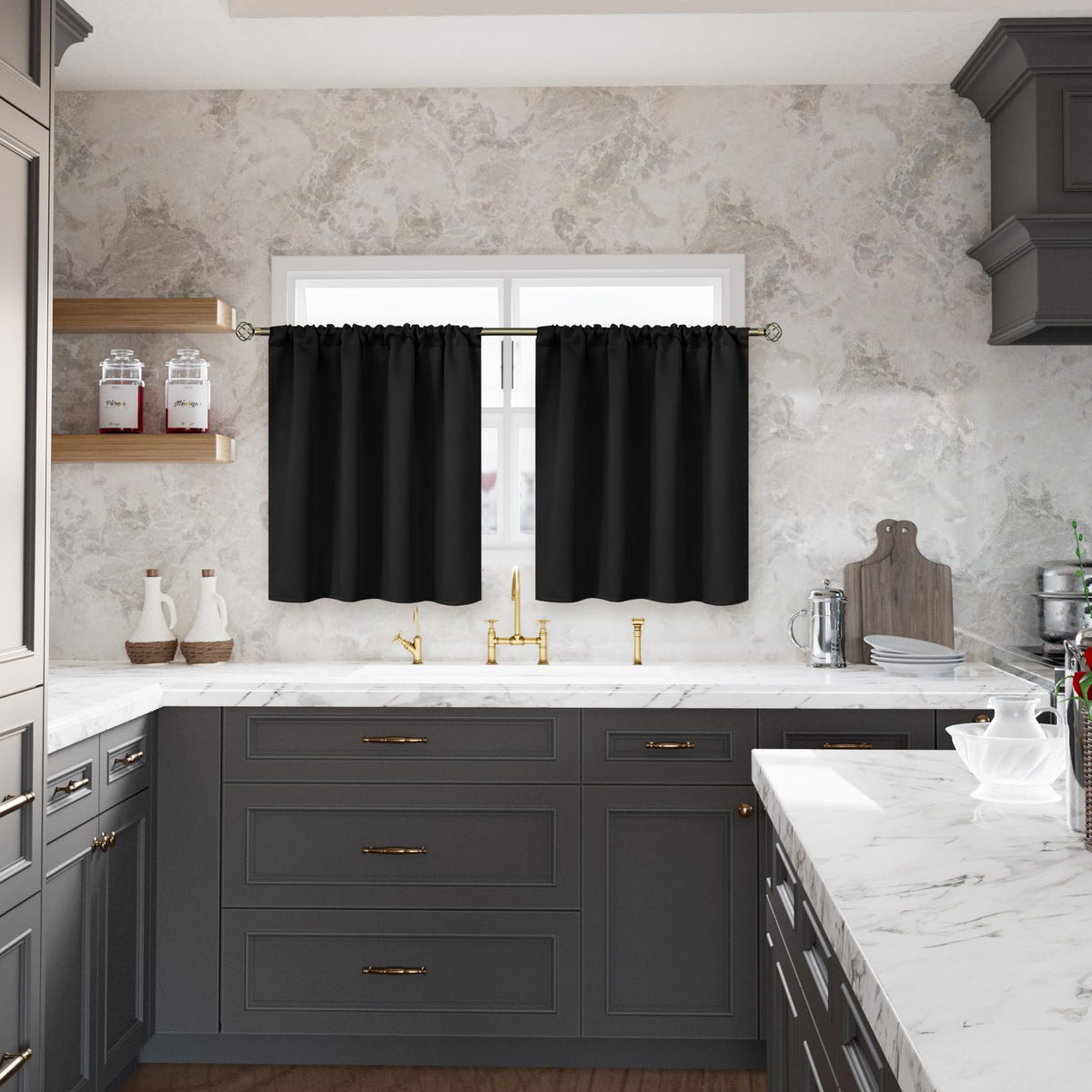 Bgment Short Half Window Curtains 30 Inches Length - Rod Pocket Black Small Drapes For Kitchen Over Sink Basement Cafe Room Darkening Blind Rv Camper Privacy, 2 Panels, 29 X 30 Inch