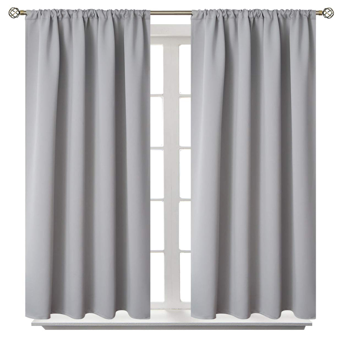 Bgment Short Room Darkening Curtains 40 Inches Long For Kitchen - Rod Pocket Thermal Insulated Blackout Curtain Drapes For Small Bedroom Window, 42 X 40 Inch, 2 Panels, Light Grey