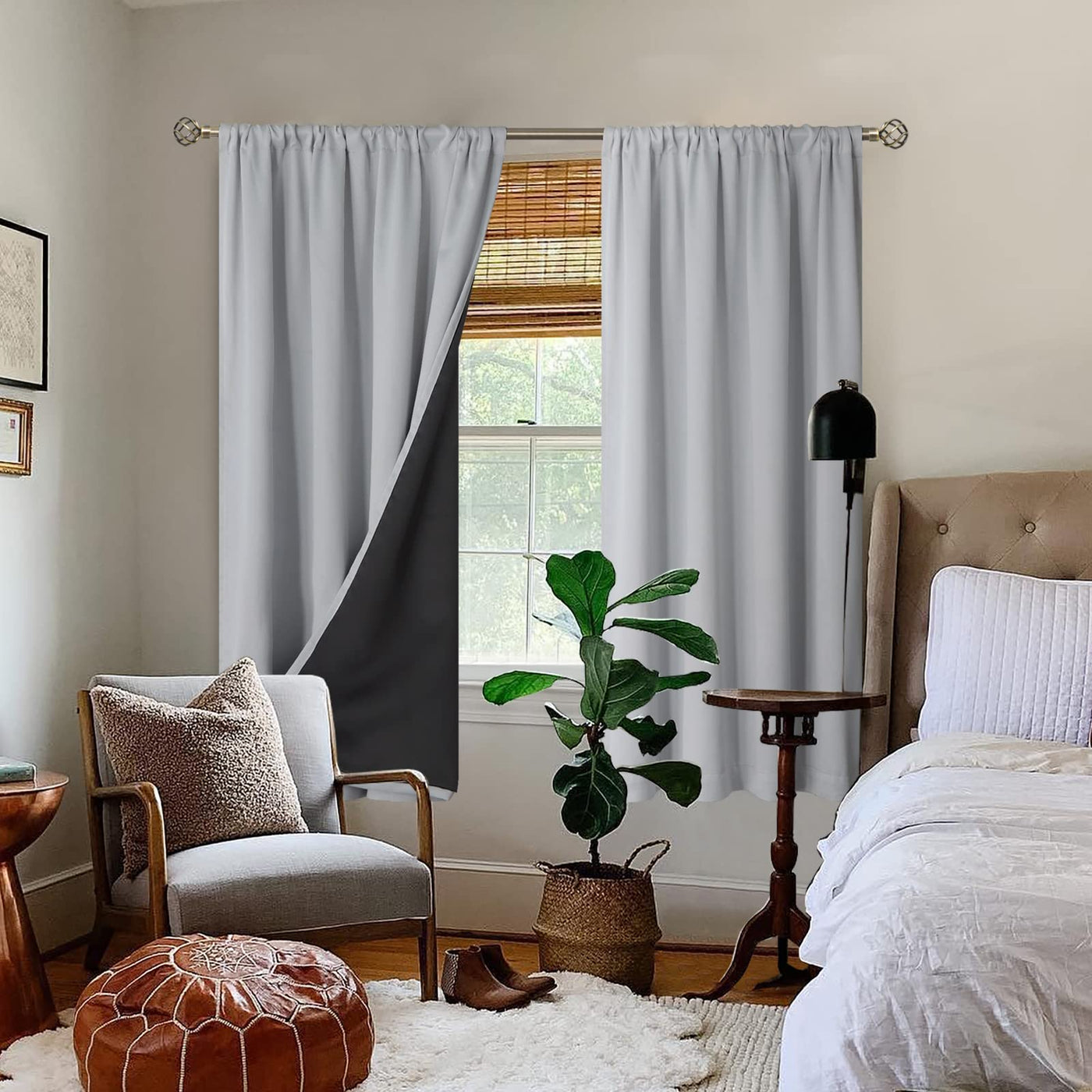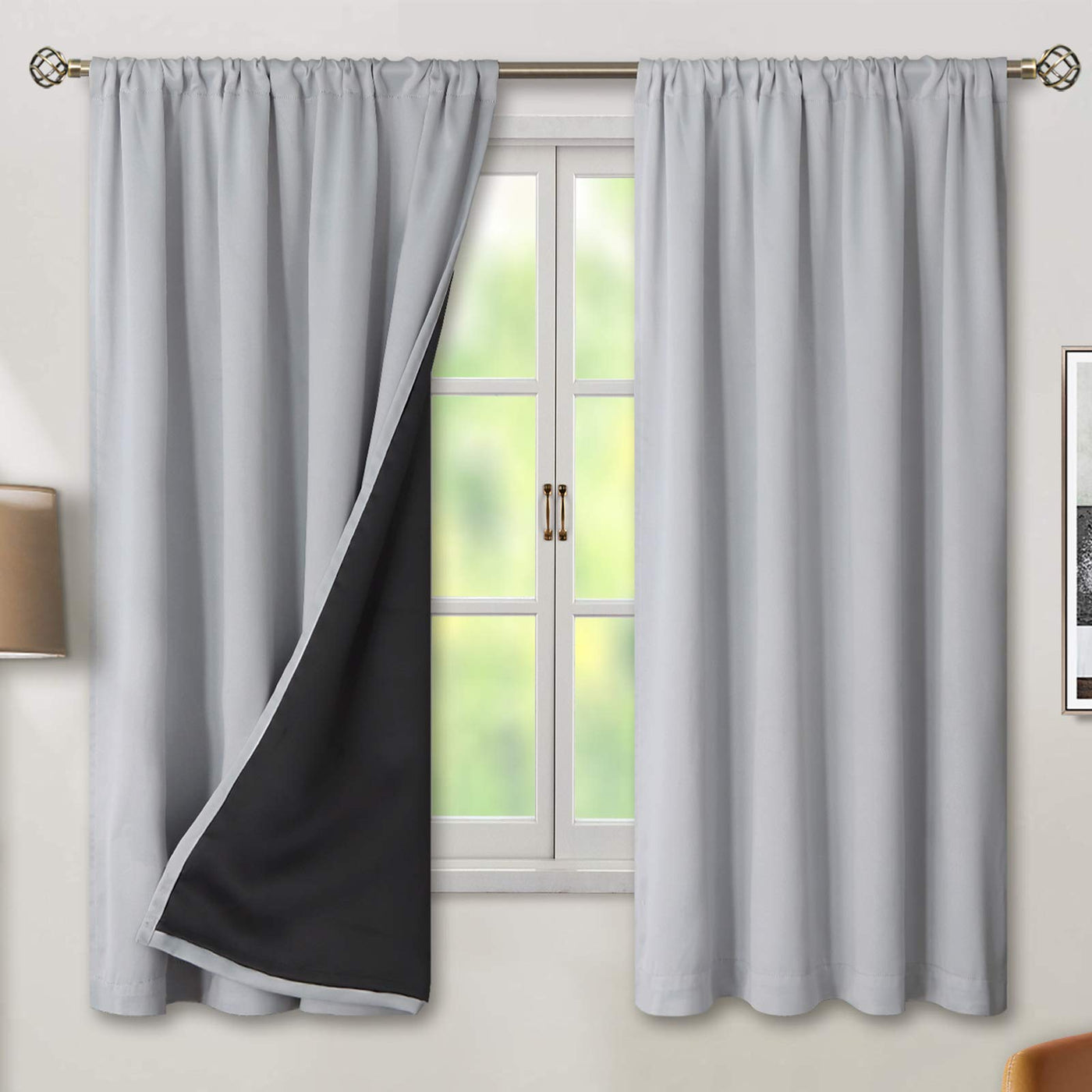 Bgment Thermal Insulated 100% Blackout Curtains For Bedroom With Black Liner, Double Layer Full Room Darkening Noise Reducing Rod Pocket Curtain (42 X 63 Inch, Light Grey, 2 Panels)