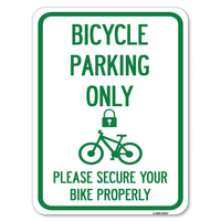 Bicycle Parking Only, Please Secure Your Bike Properly (With Cycle And Lock Symbol) | 18' X 24' Heavy-Gauge Aluminum Rust Proo