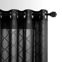 Black 52X90 Inch Length Grommet Diamond Linen Look Sheer Curtains