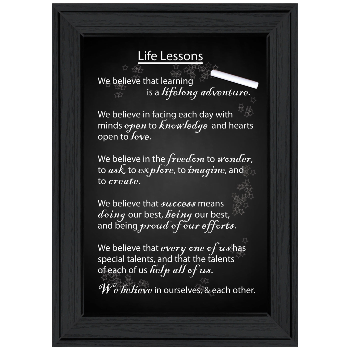 This Black and White Life Lessons black framed print wall art will add a beautiful decorative accent to your decor. This print is a visual artistic expression that allows you to decorate your space in restyle. Made for you on paper, this hanging decorative accent will be a trendy and fashionable way to dress your walls. Hang on your wall to add up to date fashion and decoration. Instantly liven up your space with this art that brings color and dimension to your walls. 15' H x H 11' W x 1' D
