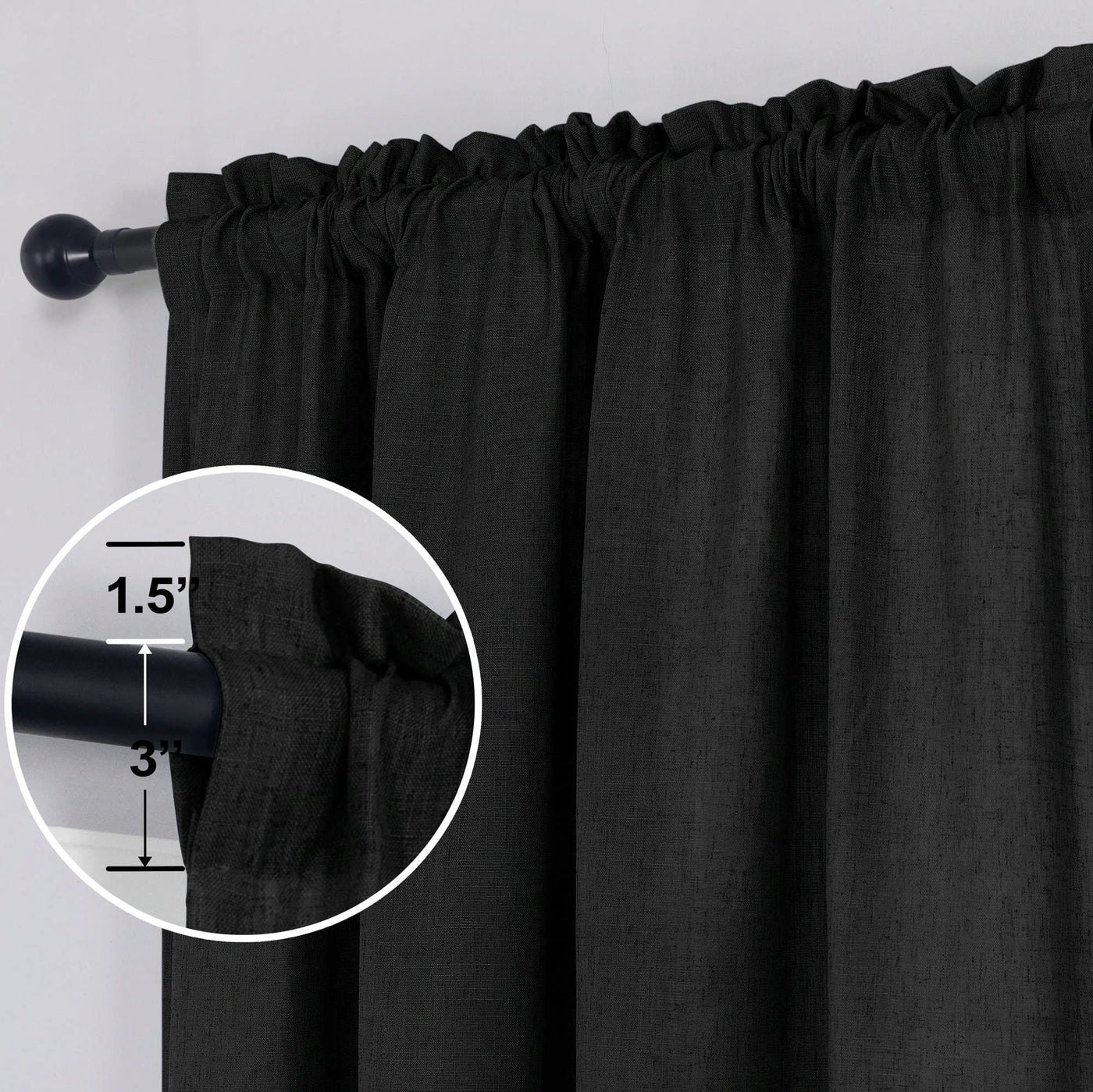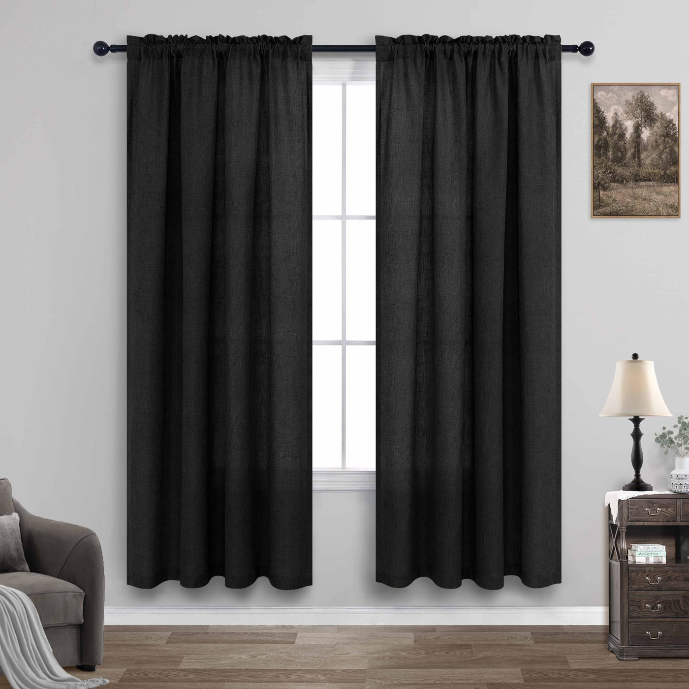 Black Linen Curtains 63 Inch Length For Boys Bedroom Living Room Rod Pocket Set 2 Panels Modern Farmhouse Decor Privacy Thick Muslin Look Semi Sheer Curtain Draperies For Dining Room Awning Windows