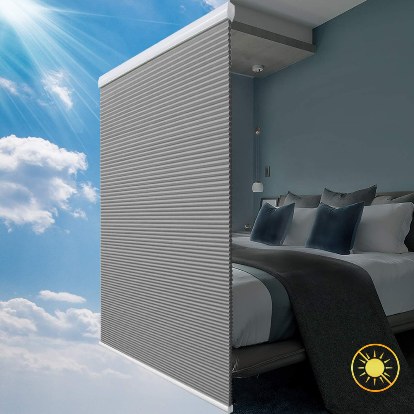 Q: What are the benefits of using Blackout Cellular Shades?A: Blackout Cellular Shades provide 100% light blocking, ensuring complete privacy and light control. They also feature an insulation and sound-absorbing honeycomb structure that helps maintain indoor temperatures while reducing noise.