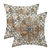 Boho Pillow Covers 18X18 Set Of 2, Blue Gold Carpet Pattern Decorative Throw Pillows Linen Ethnic Design Farmhouse Cushion Pillo